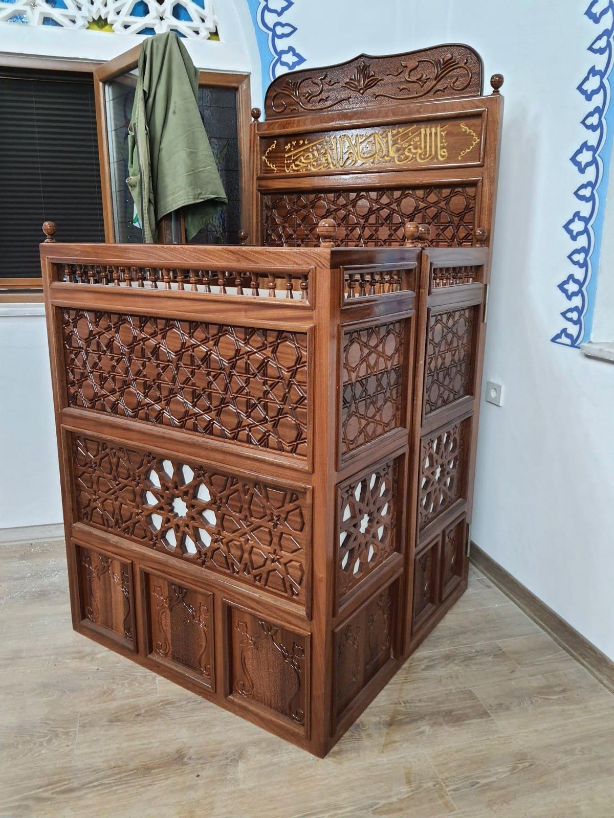 Uluatalar Ahşap Vaiz Kürsüsü İmalatları konusunda uzman sanatkarlar tarafından Tarihi motiflere uygun olarak, yüksek teknoloji ile üretilmektedir.